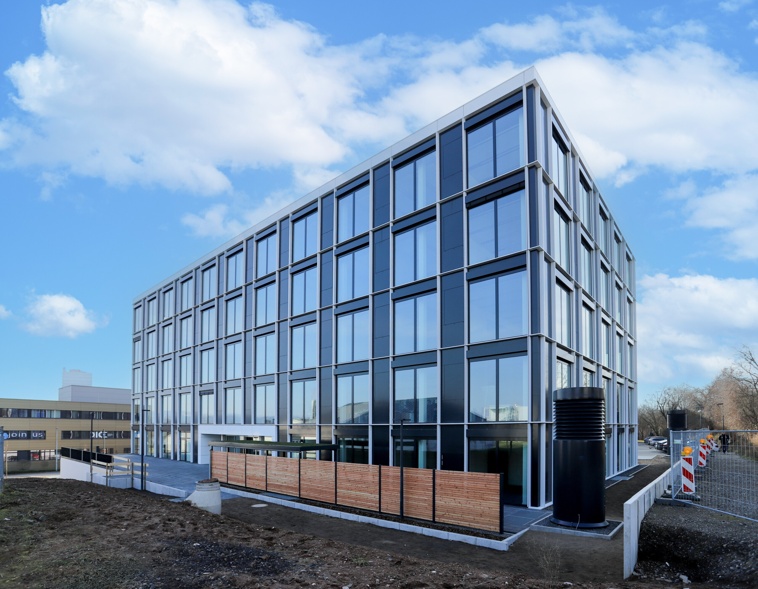 Neben der besonderen architektonischen Qualität gehen fries architekten und die Bauherrin, die Wirtschaftsförderungsgesellschaft der Stadt Koblenz, in Sachen Konstruktion, Flexibilität, Klimaschutz und Nachhaltigkeit des neuen IT-Centers Pier56 ganz neue Wege. Das 6-geschossige Gebäude mit über 3200 Quadratmetern Büroflächen und einer gesamten Nutzfläche von 5460 Quadratmetern ist nahe der Universität Koblenz, unmittelbar neben dem Technologie- und Gründerzentrum (TZK), errichtet worden. Der Vorteil für Mieter liegt in darin, dass die benötigten Flächen flexibel gestaltet werden können. Der Neubau in Stahlbetonskelettbauweise ist unter höchsten Ansprüchen an die Nachhaltigkeit errichtet worden. Angestrebt wird eine Zertifizierung nach „DGNB Gold“ der Deutschen Gesellschaft für Nachhaltiges Bauen und des staatlichen „Qualitätssiegels Nachhaltiges Gebäude (QNG)“ des Bundesministeriums für Wohnen, Stadtentwicklung und Bauwesen. Dies erfordert einen klimaneutralen Betrieb des Gebäudes unter Einsatz nachhaltiger Materialien und einer effizienten Haustechnik.