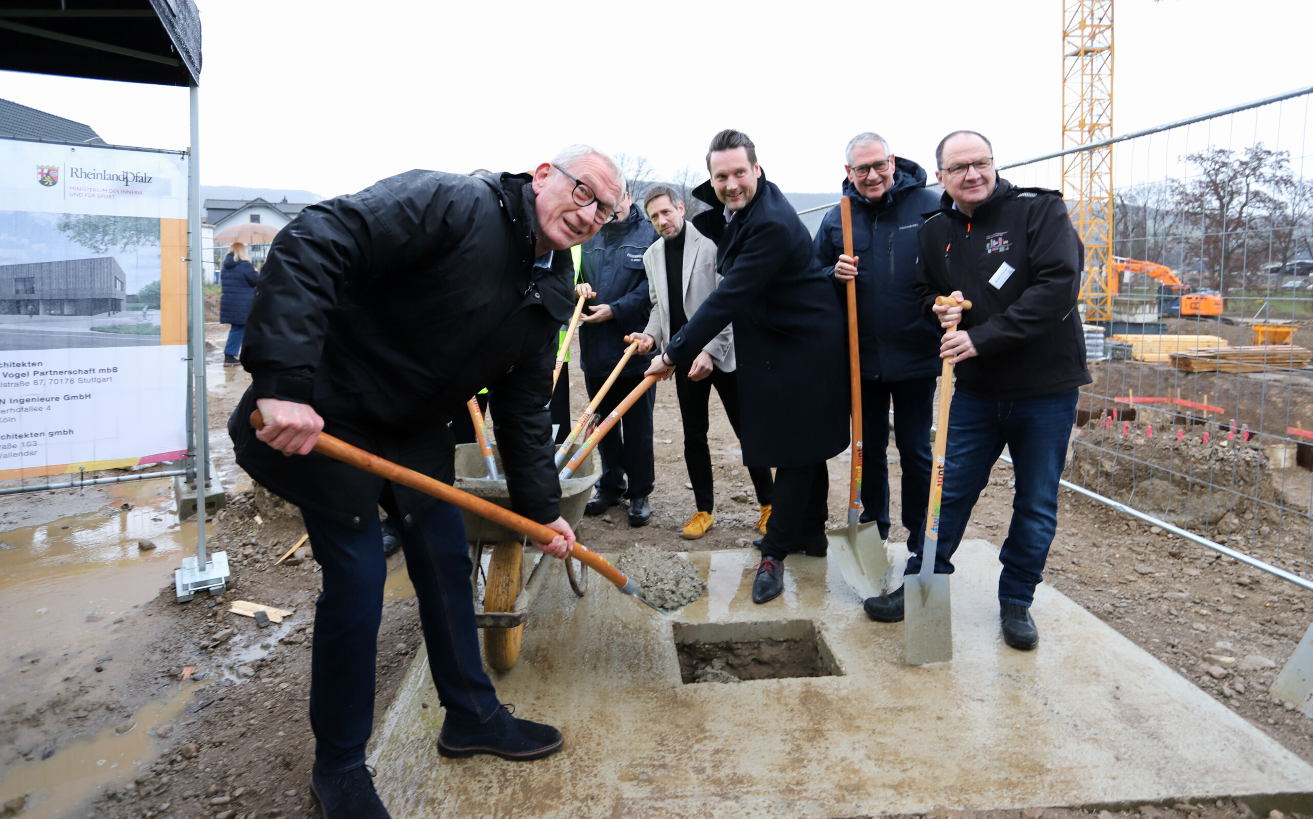 Bürgermeister Guido Orthen, der Erste Beigeordnete Peter Diewald, Staatssekretär Daniel Stich aus dem rheinland-pfälzischen Innenministerium sowie Vertreter der Feuerwehr setzten gemeinsam eine mit Dokumenten und Zeitungsunterlagen gefüllte Stahlkapsel in ein vorbereitetes Mauerstück ein und verschlossen dieses anschließend mit Beton. Damit wurde der Bau des neuen Feuerwehrhauses feierlich besiegelt.