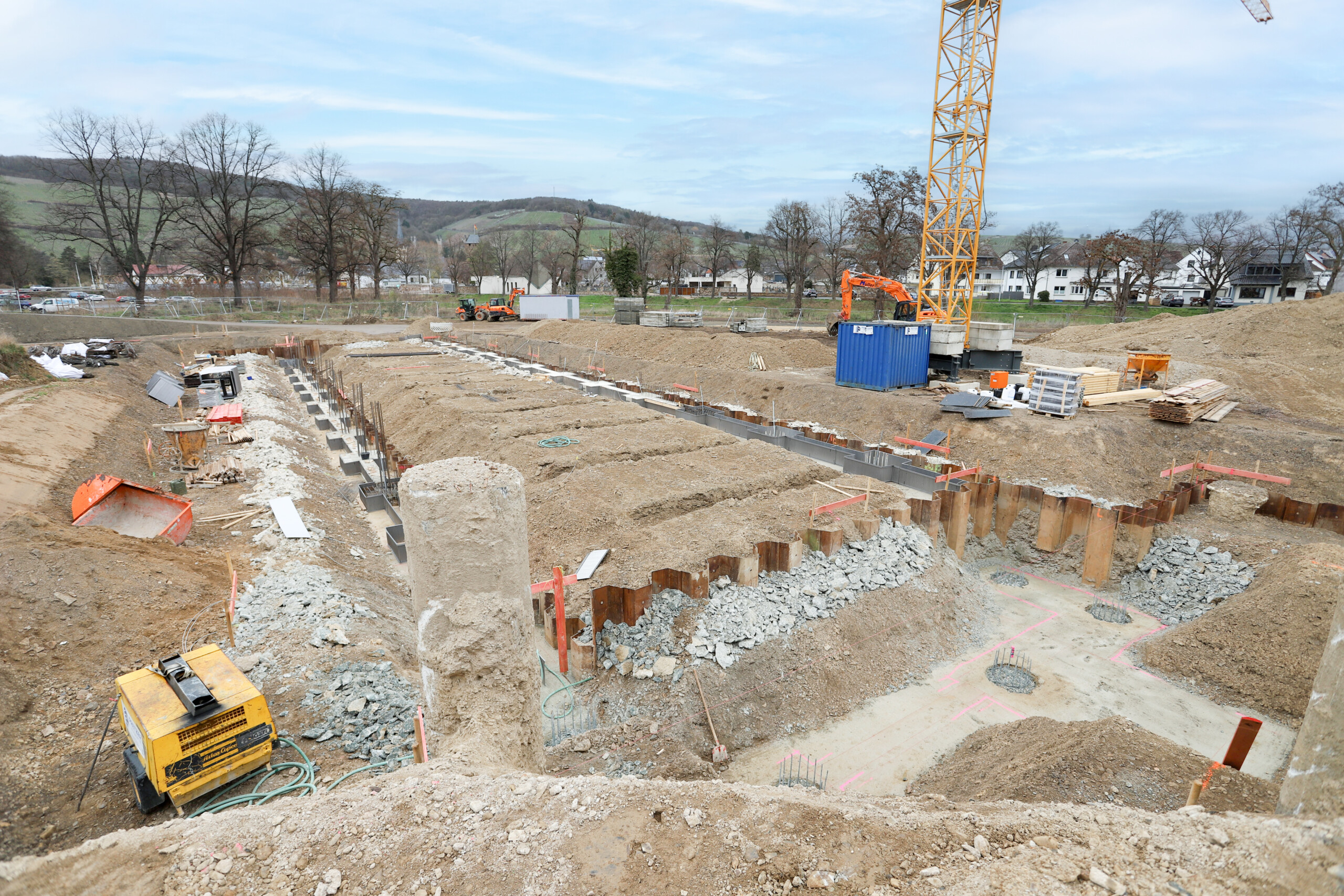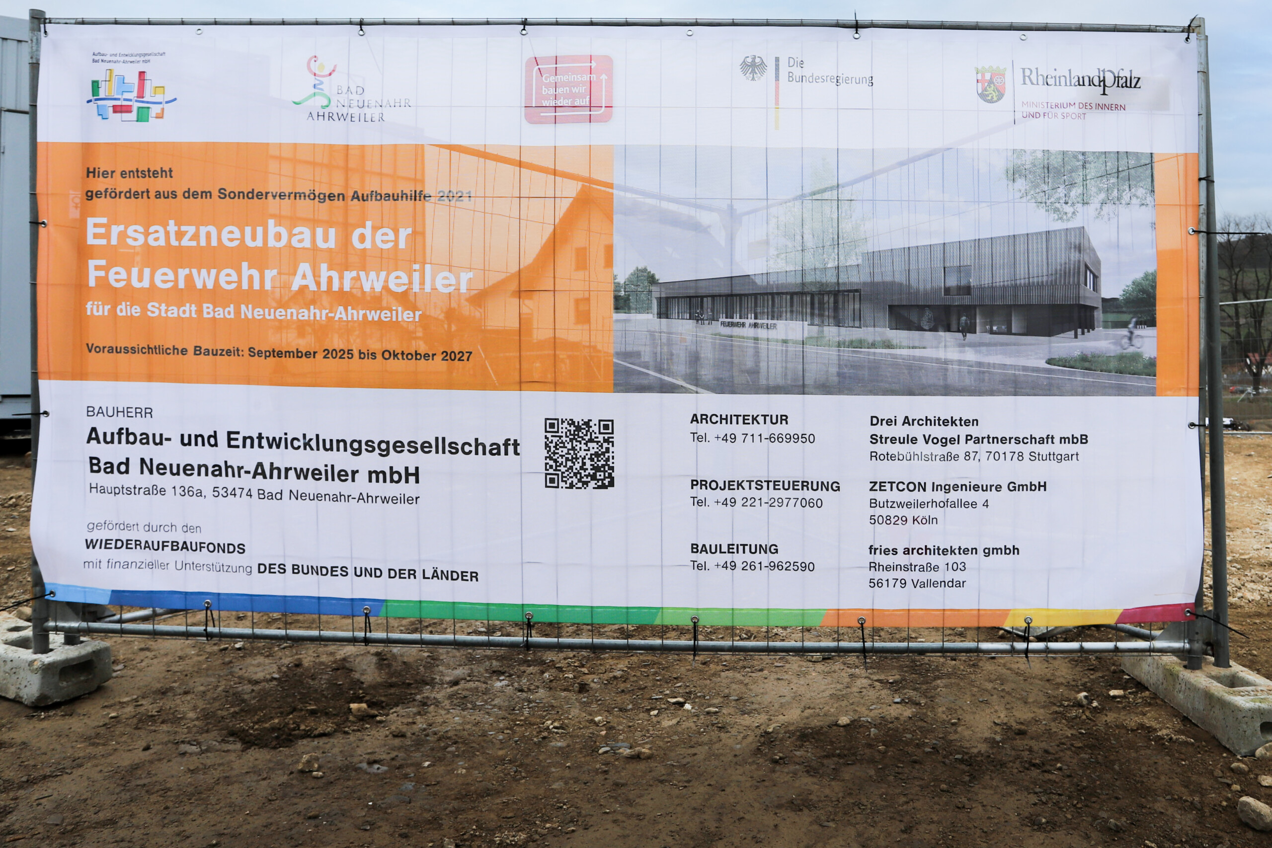 Das ursprüngliche Feuerwehrhaus war bei der Flutkatastrophe im Juli 2021 schwer beschädigt worden und musste anschließend teilweise abgerissen werden. Am neuen Standort – dem Gelände des ehemaligen Ahrstadions auf der Südseite der Ahr in der Ramersbacher Straße – entsteht nun ein modernes, leistungsfähiges Feuerwehrhaus.